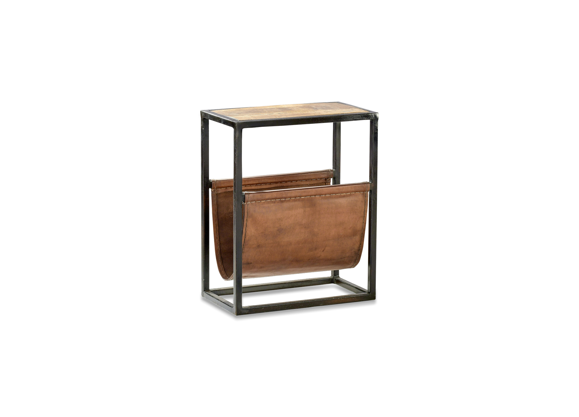 La table d'appoint Alera, aux proportions harmonieuses, allie bois de manguier durable et cuir. Les riches nuances du cuir se marient aux veines naturelles apaisantes du bois et créent avec élégance un espace pour vos magazines et livres. Sa structure robuste est en fer.