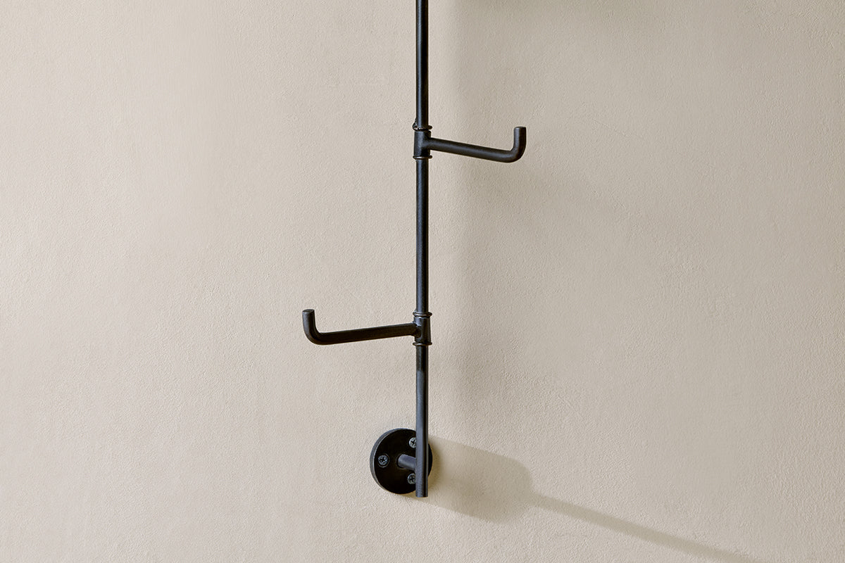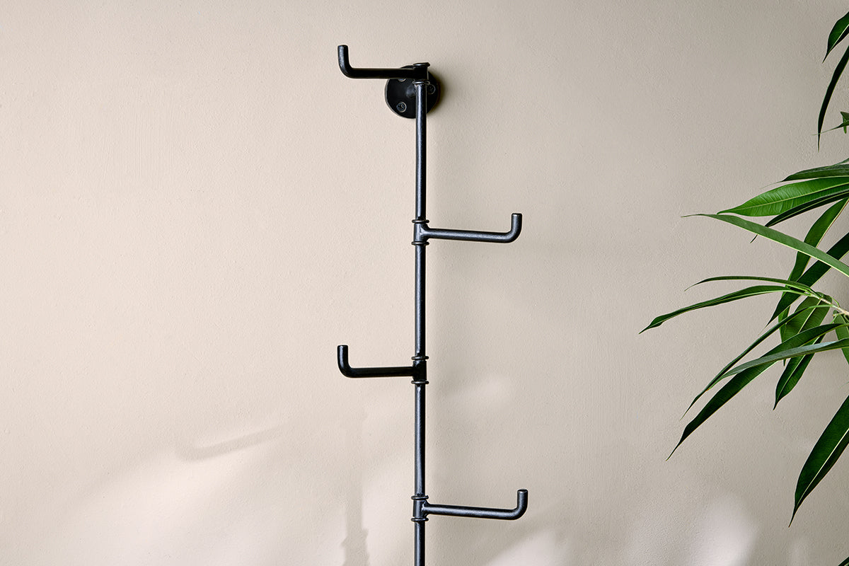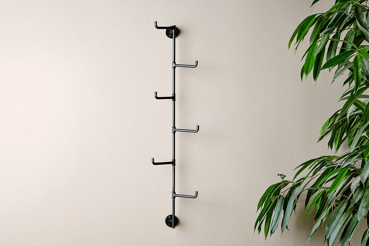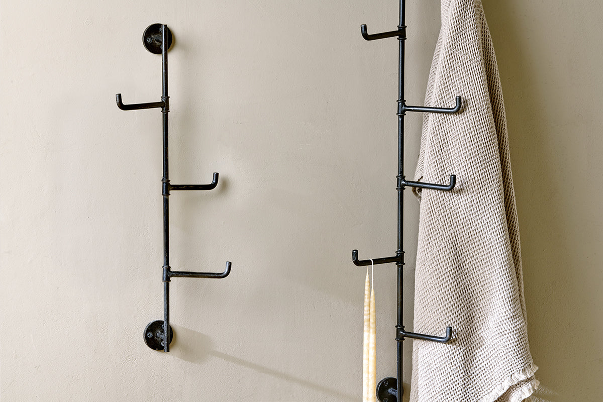 Ce crochet mural Aniko, au design soigné, propose au choix 3 ou 5 crochets pivotants et flexibles. La barre se fixe facilement au mur pour un rangement à la fois élégant et pratique.