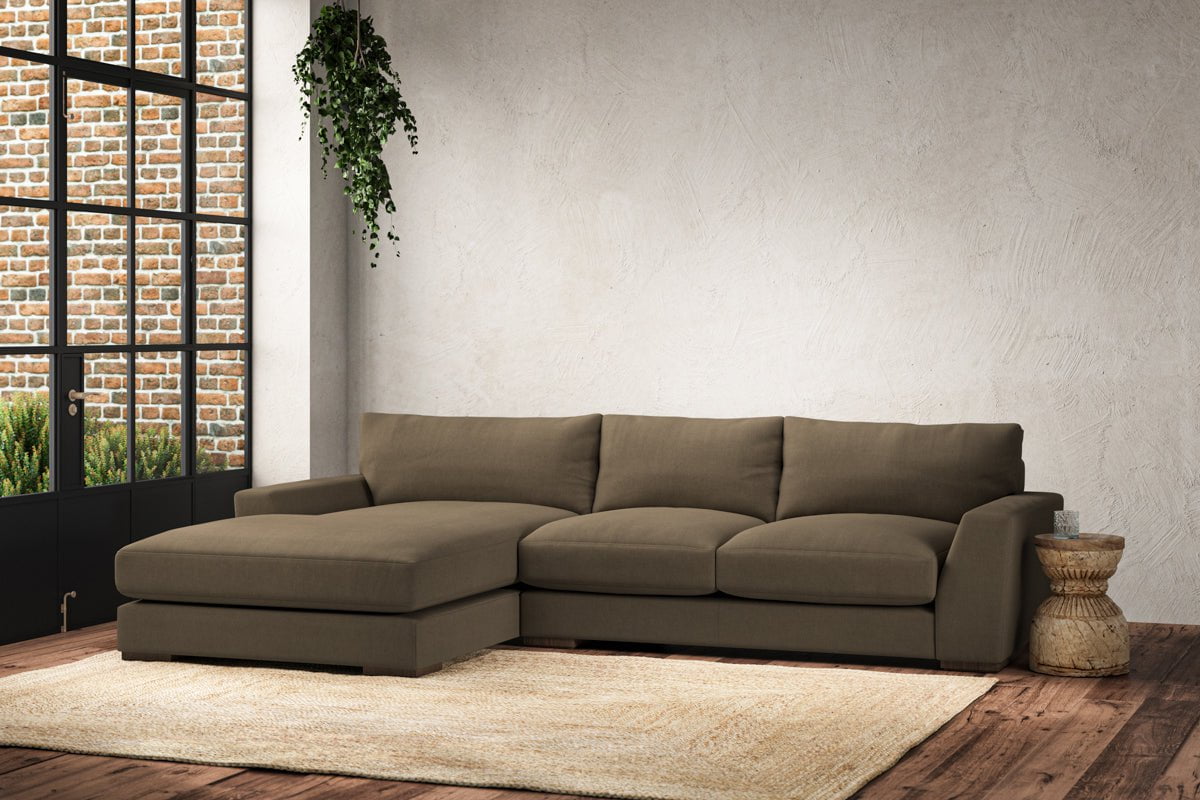 Canapé méridienne Guddu Medium avec accoudoir gauche - Lin Brera Châtaigne