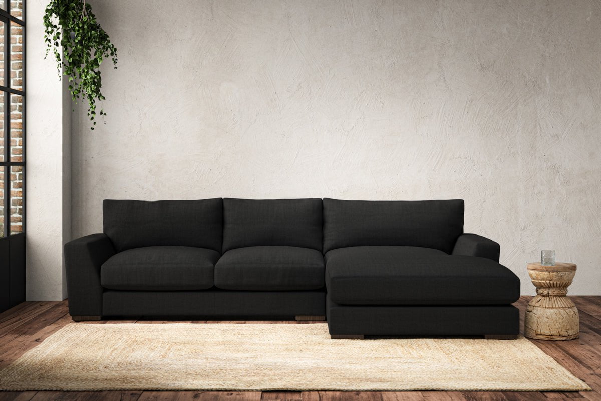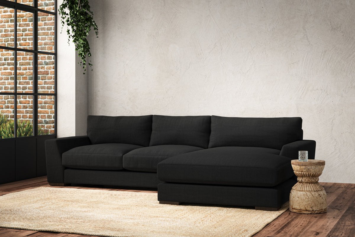 Canapé méridienne Guddu Medium avec accoudoir droit - Lin Brera anthracite