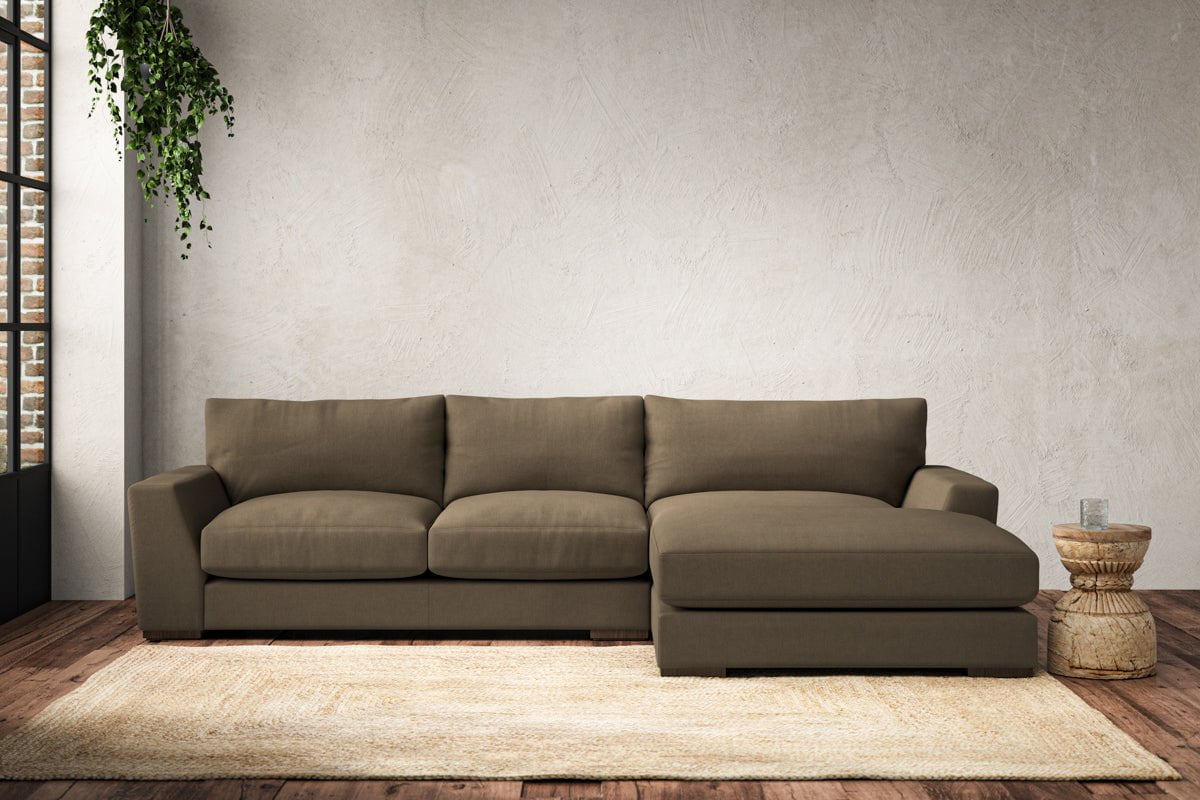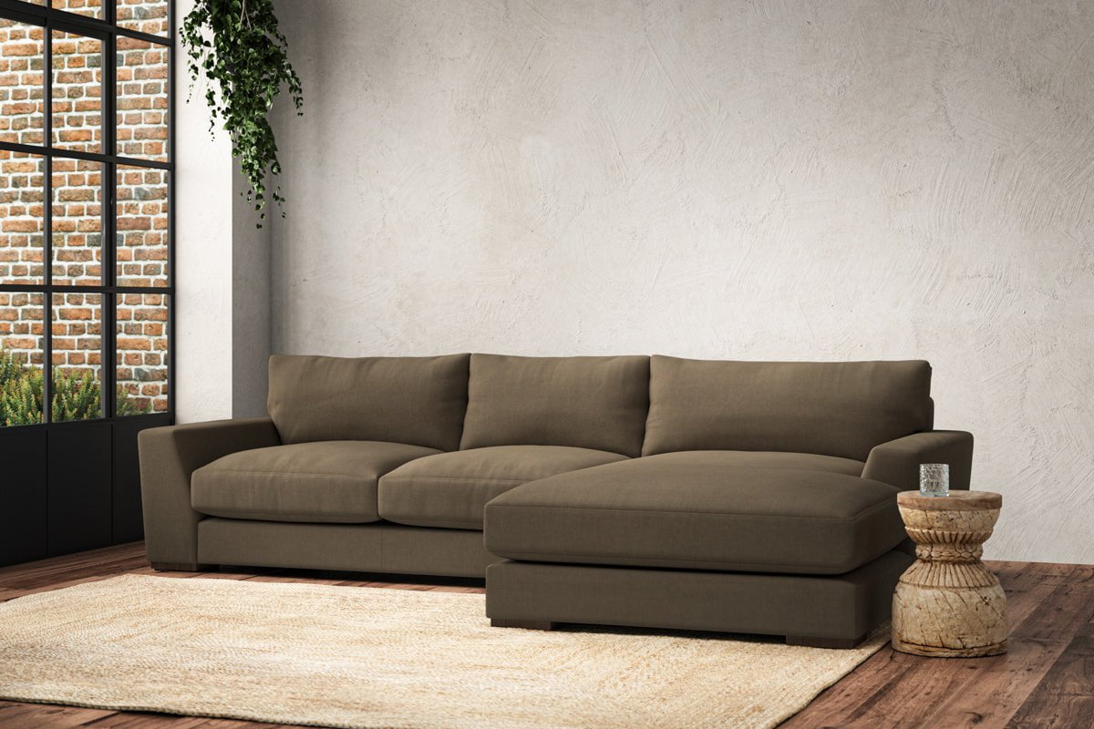Canapé méridienne Guddu Medium avec accoudoir droit - Lin Brera Châtaigne