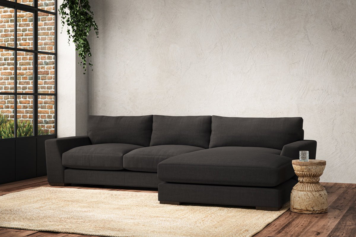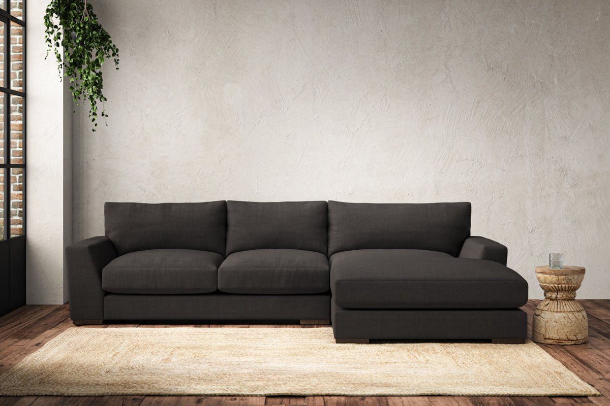 Canapé méridienne Guddu Medium avec accoudoir droit - Lin Brera Espresso