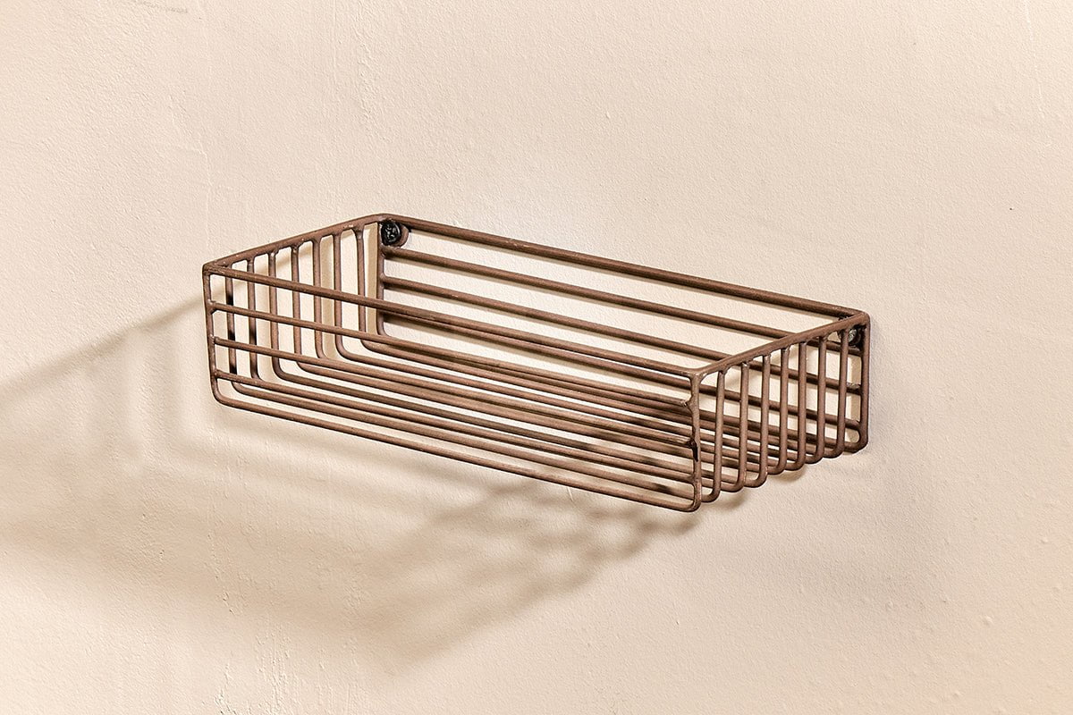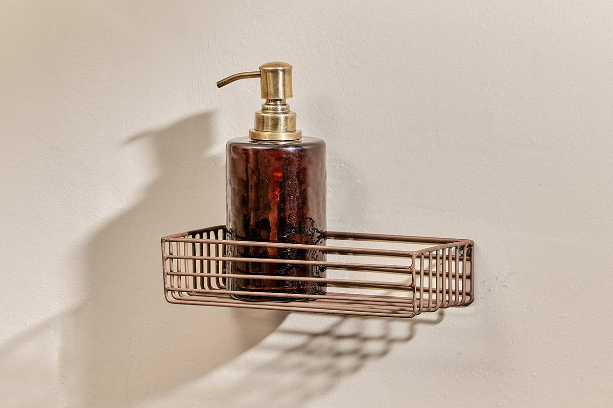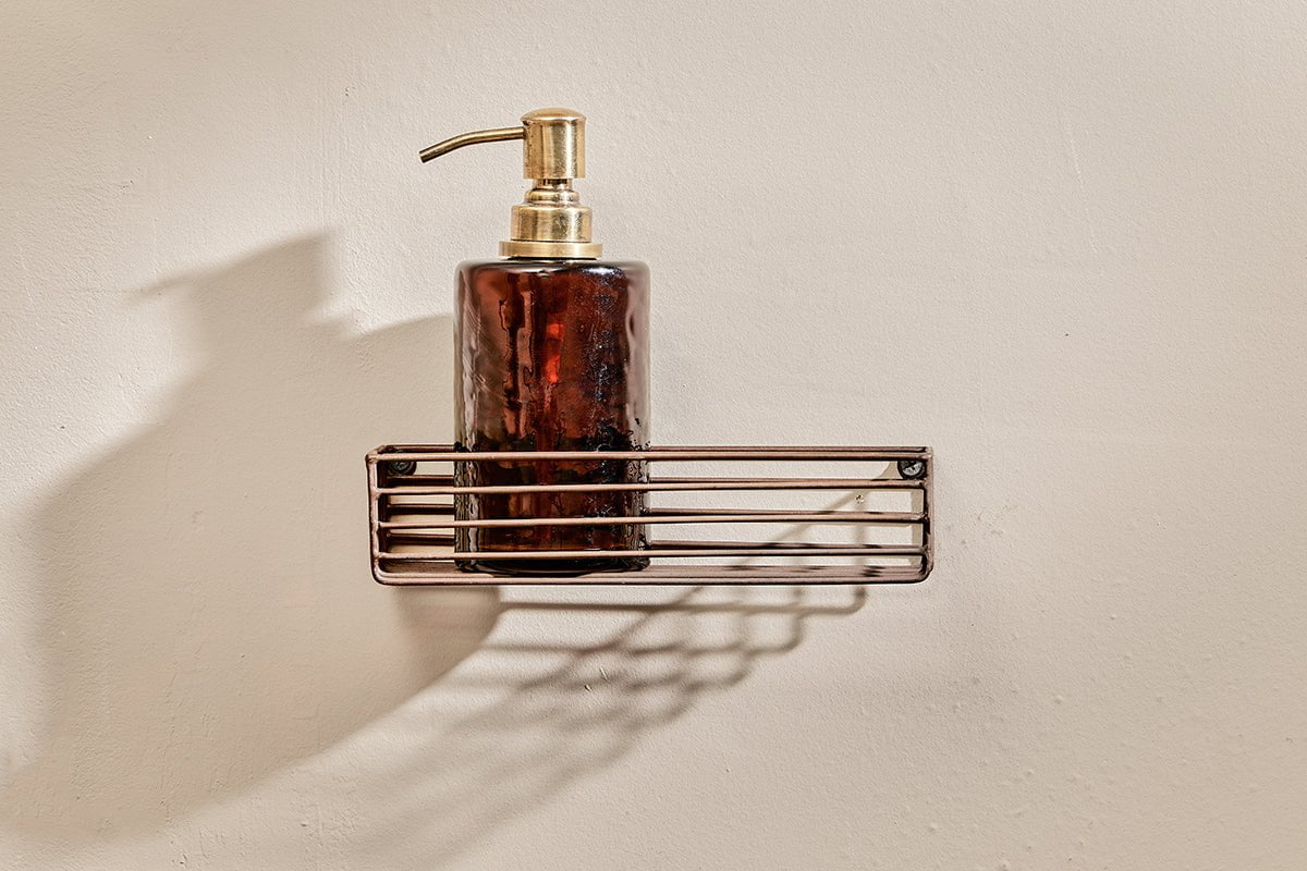 L'étagère métallique Indore arbore un style industriel. Pratique, elle est conçue pour accueillir nos flacons distributeurs d'un litre ainsi que nos petits distributeurs de savon. Son design épuré lui permet de se fixer discrètement au mur. Le fer, recouvert d'une peinture en poudre, présente une patine laiton vieilli, idéale pour une salle de bain ou une douche.