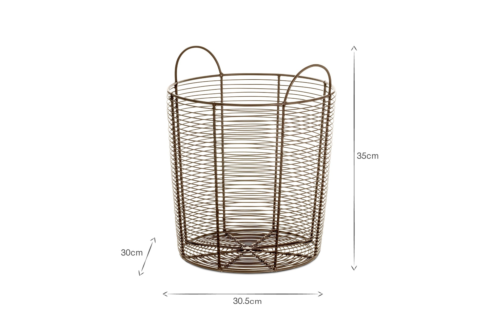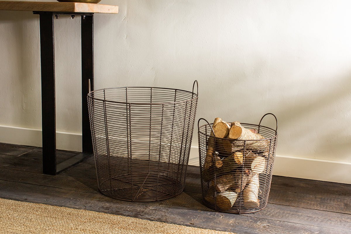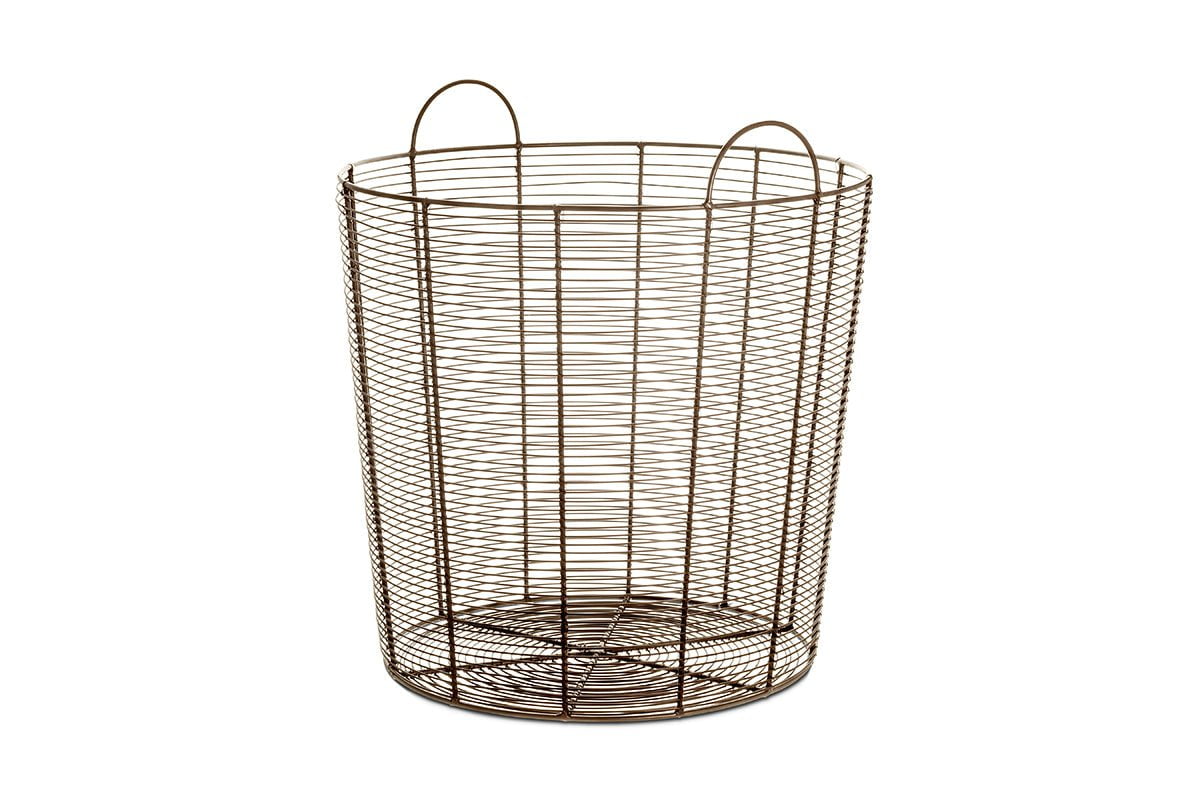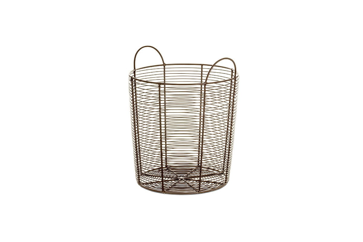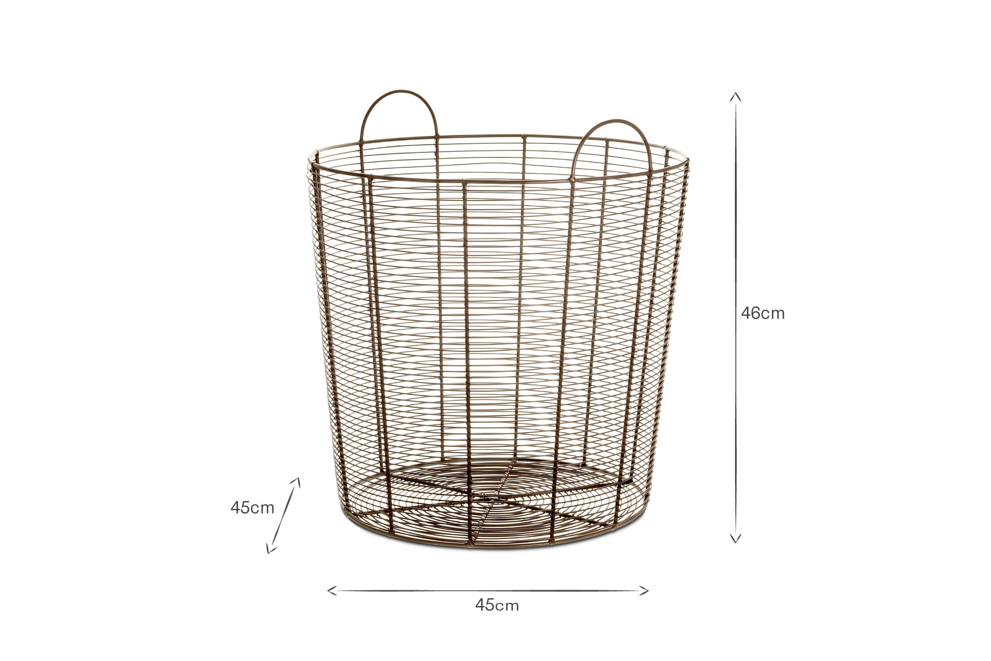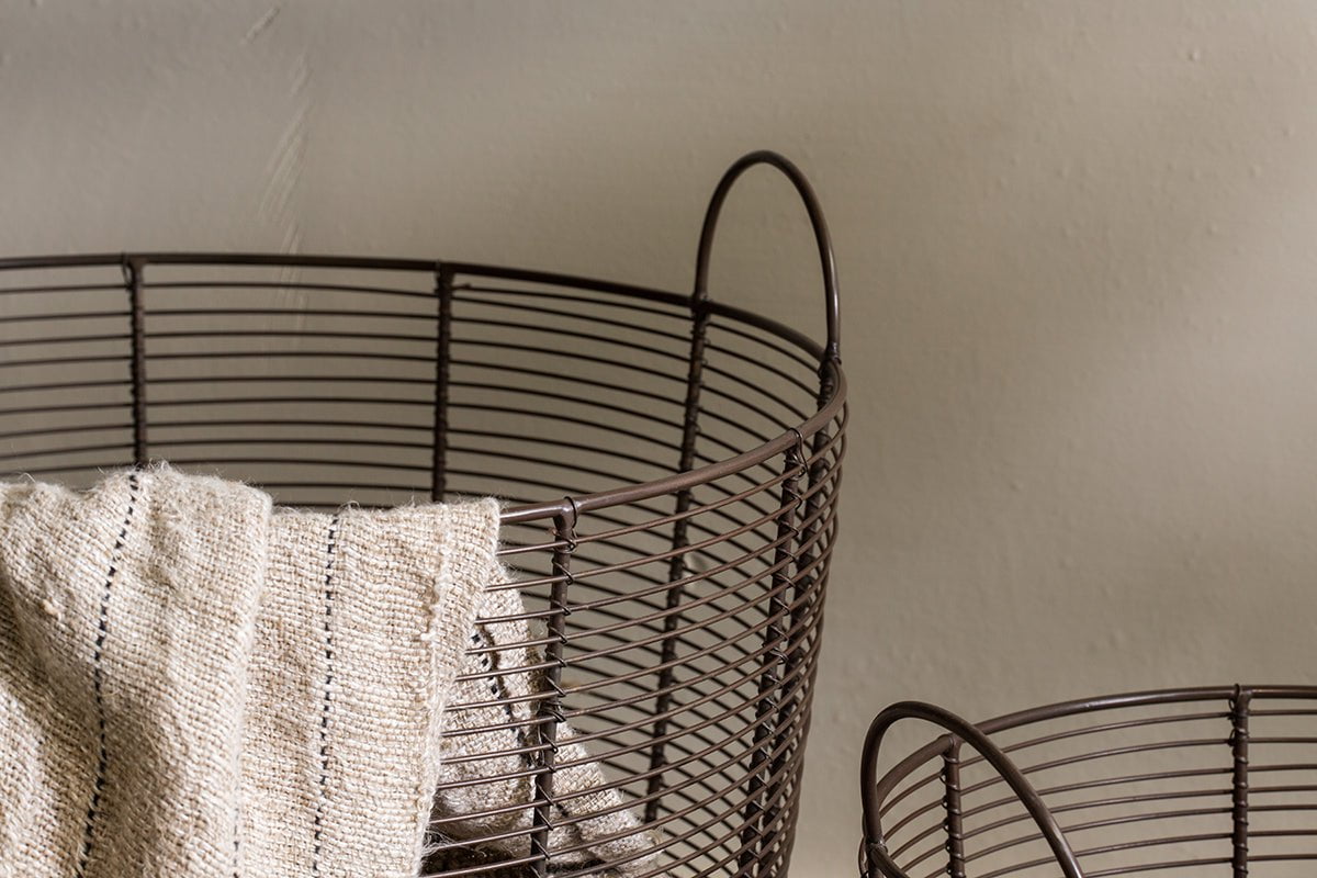 Avec son esthétique utilitaire saisissante et son travail de fil de laiton vieilli, notre panier de rangement Inkollu vous permet de garder votre maison bien rangée. Le fil de laiton a été façonné à la main avec dextérité et expertise pour créer un produit à la fois résistant et élégant. Deux poignées pratiques facilitent son transport. Son design épuré fait de ce panier une solution de rangement polyvalente, idéale pour contenir aussi bien des légumes frais que du bois pour la cheminée. Disponible en deux tailles.