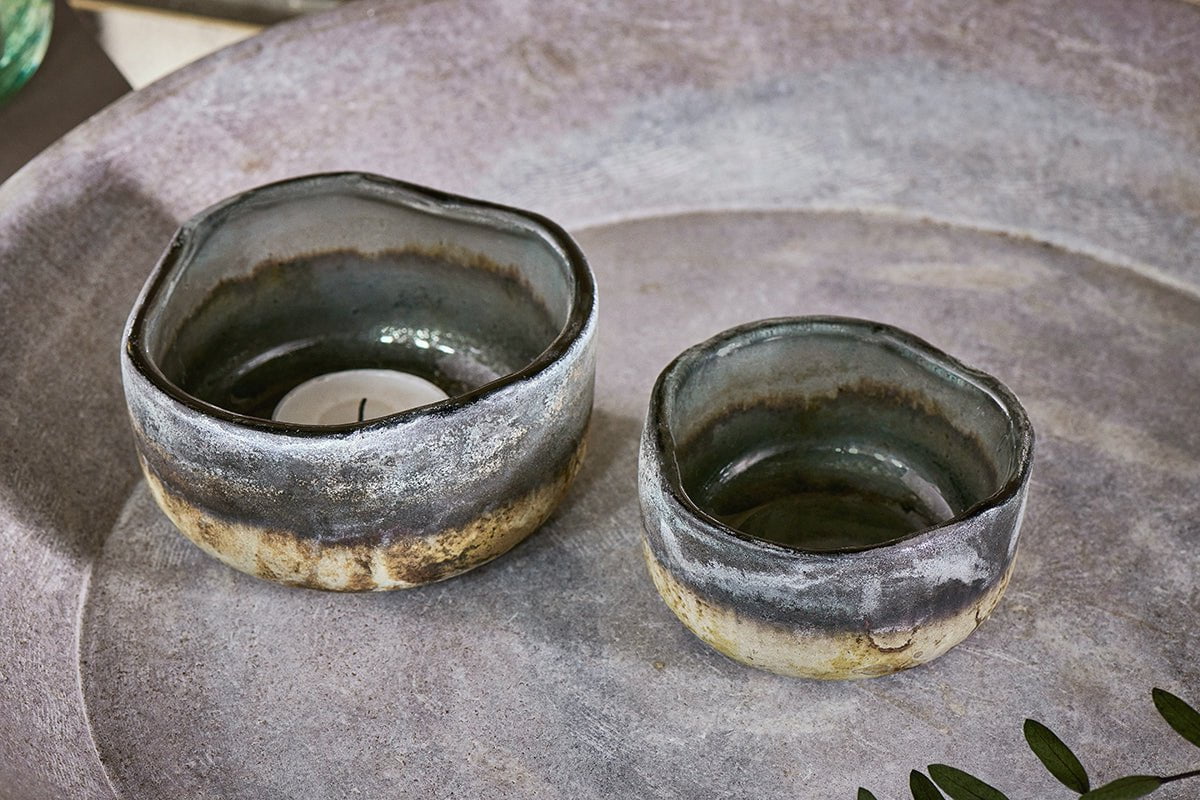 Porte-bougies chauffe-plat Janka - Charbon (Lot de 2)
