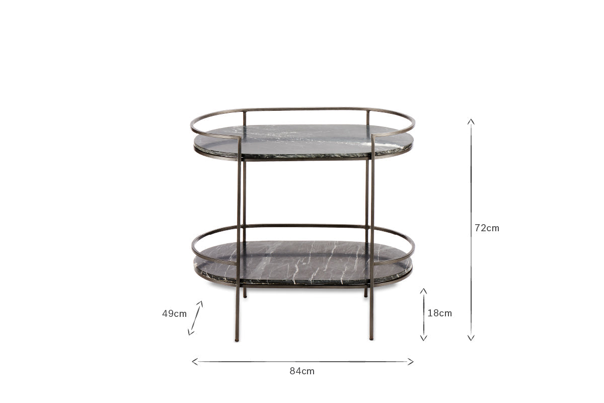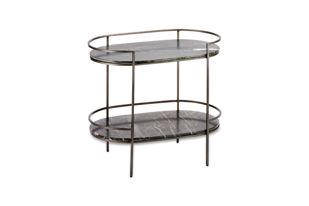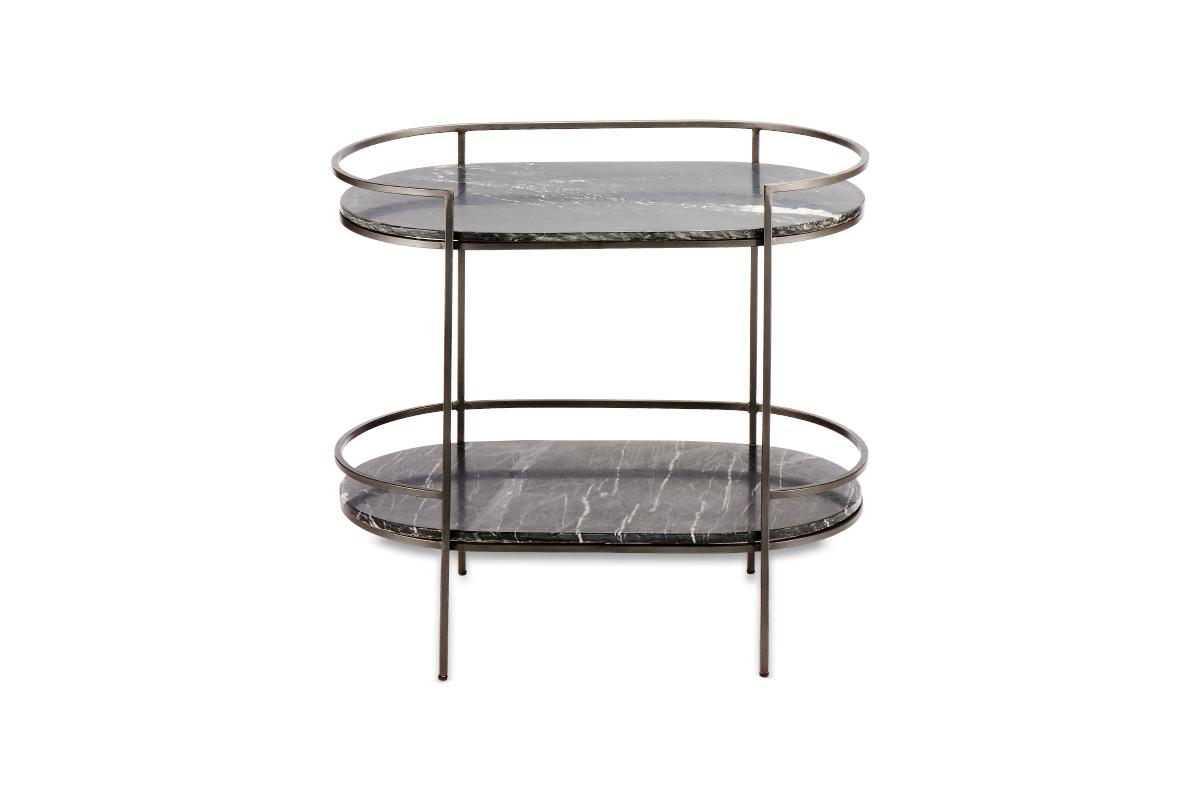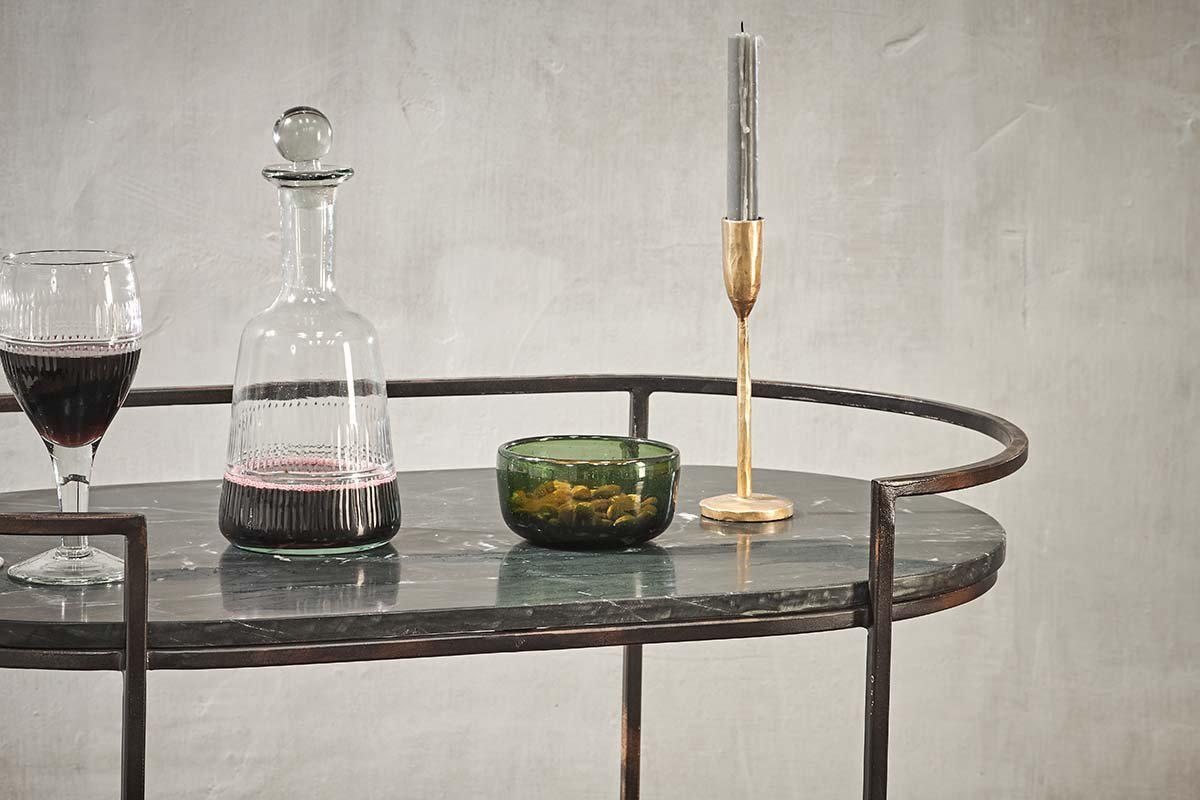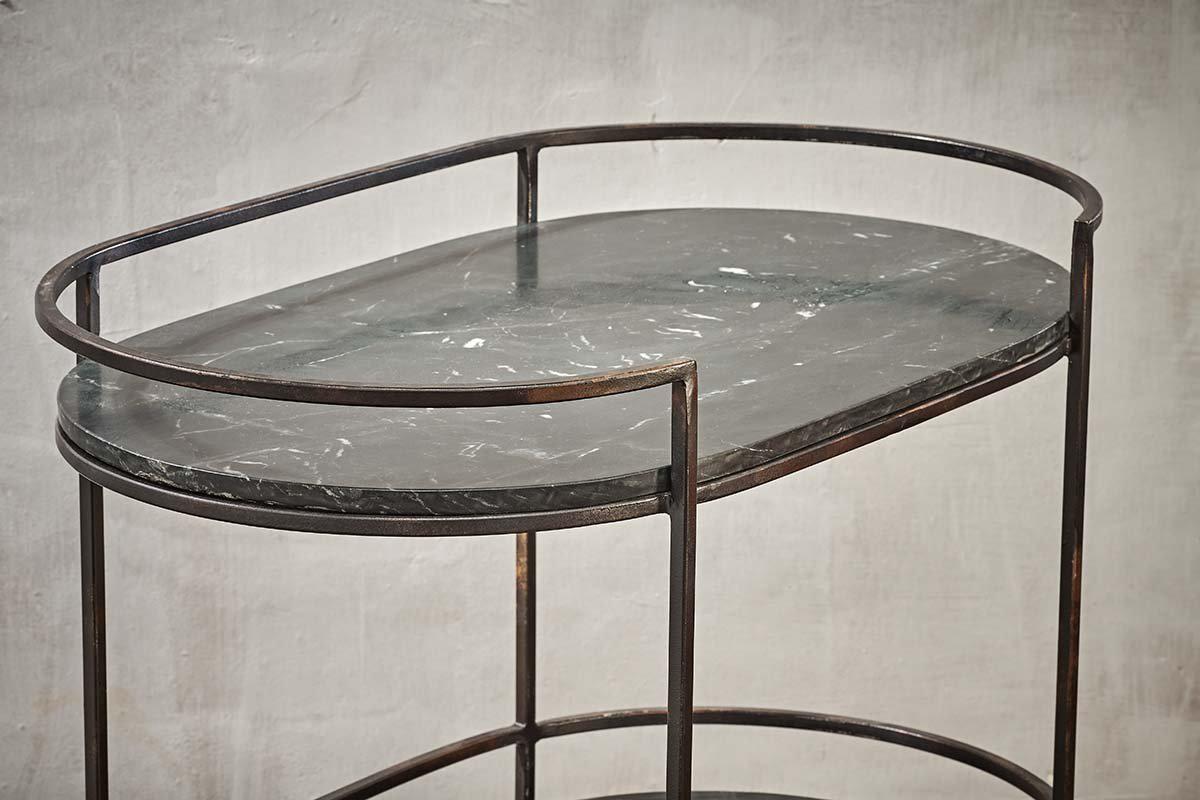 La table basse en marbre Karoko est idéale pour recevoir. Son plateau et son étagère inférieure en marbre noir massif sont travaillés dans la masse. Le marbre naturel, unique à chaque pièce, confère à la table un caractère distinctif. La structure en fer raffinée lui apporte une touche d'élégance. À mettre en valeur avec des bouteilles et des verres à cocktail.