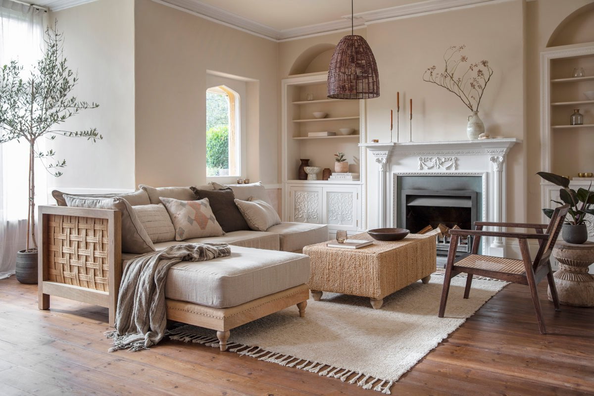 Le canapé modulable Krissa se compose d'un module d'angle et de deux extensions, et est fabriqué avec soin en bois de manguier massif. Il est facile à agrandir en ajoutant des modules et des éléments d'angle individuels pour créer le canapé idéal pour votre salon.