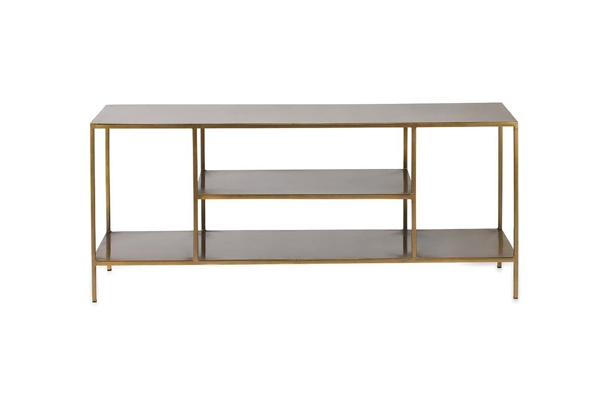L'élégante étagère multimédia Mahi vous permet d'accueillir vos appareils de divertissement avec style sans compromis. Sa structure fine et élégante se divise en étagères bien proportionnées et pratiques. Les chaudes teintes laiton ajoutent une touche de sophistication et de charme.