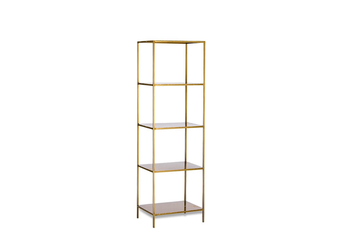 L'étagère Mahi allie fonctionnalité et style avec élégance. Ses lignes épurées en laiton la rendent idéale pour exposer et ranger vos objets.