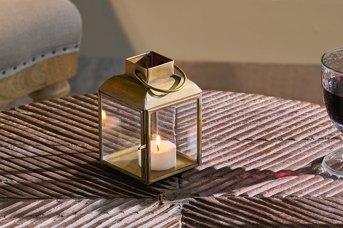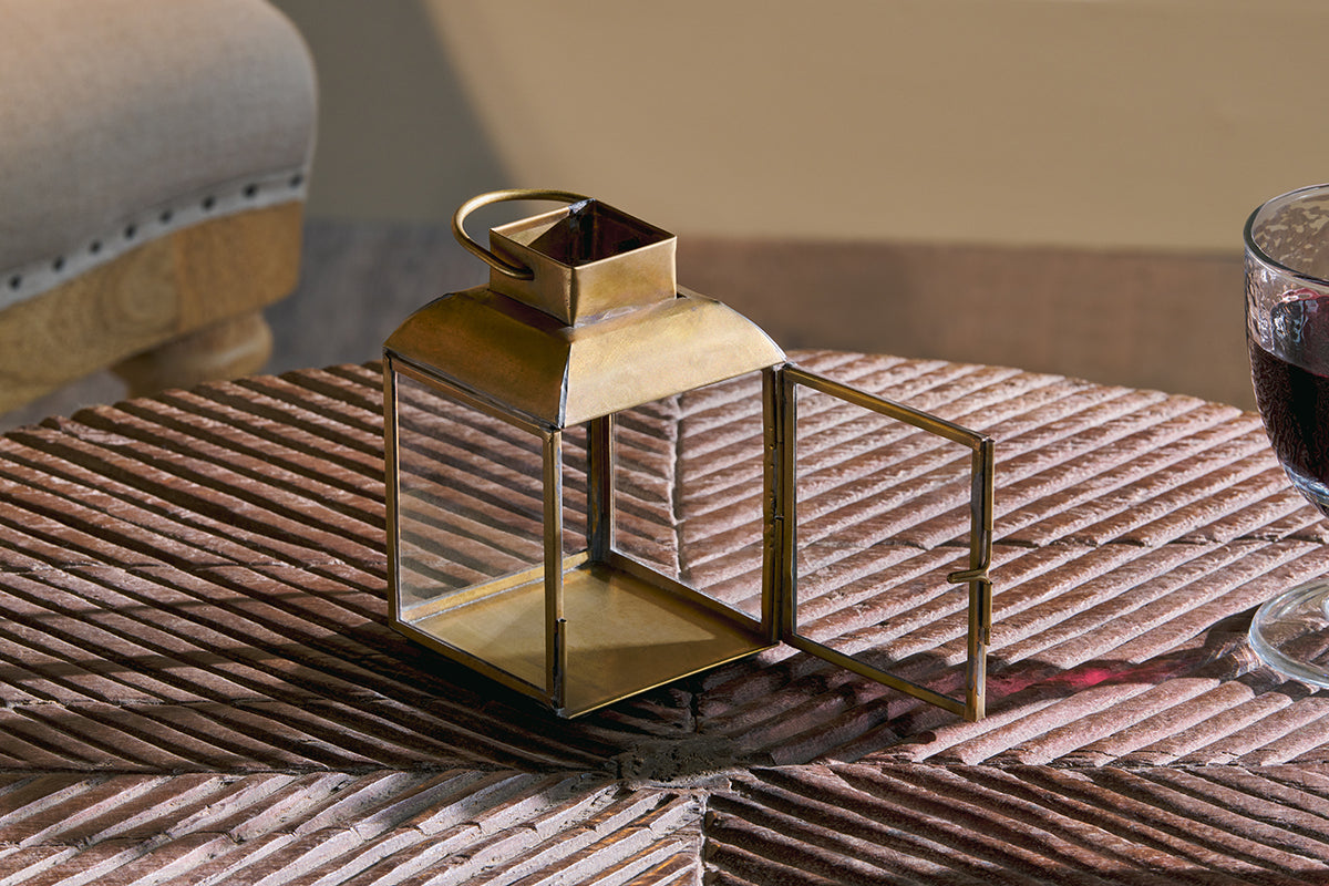 Intemporelle et élégante, la lanterne en laiton Maro arbore un style traditionnel. Fabriquée en laiton, cette lanterne carrée est composée de quatre vitres et d'une poignée de transport discrète. Il suffit d'ouvrir la petite porte vitrée en soulevant la fixation à goupille et d'y placer une bougie chauffe-plat. Disposez-la au centre d'une table ou associez-la à d'autres lanternes de la collection Maro pour une ambiance raffinée.