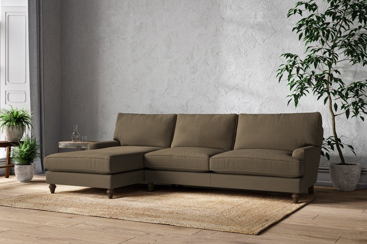 Canapé méridienne Marri Grand avec accoudoir gauche - Lin Brera Châtaigne
