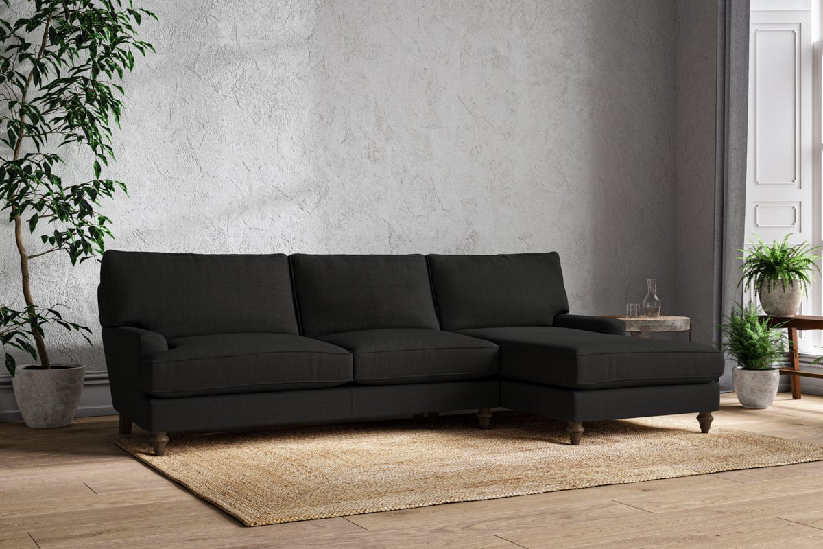 Canapé méridienne Marri Grand avec accoudoir droit - Lin Brera anthracite