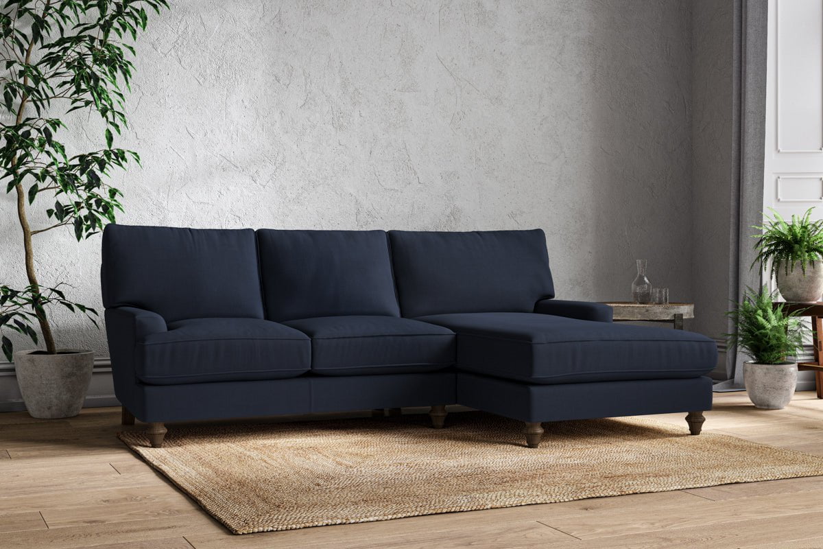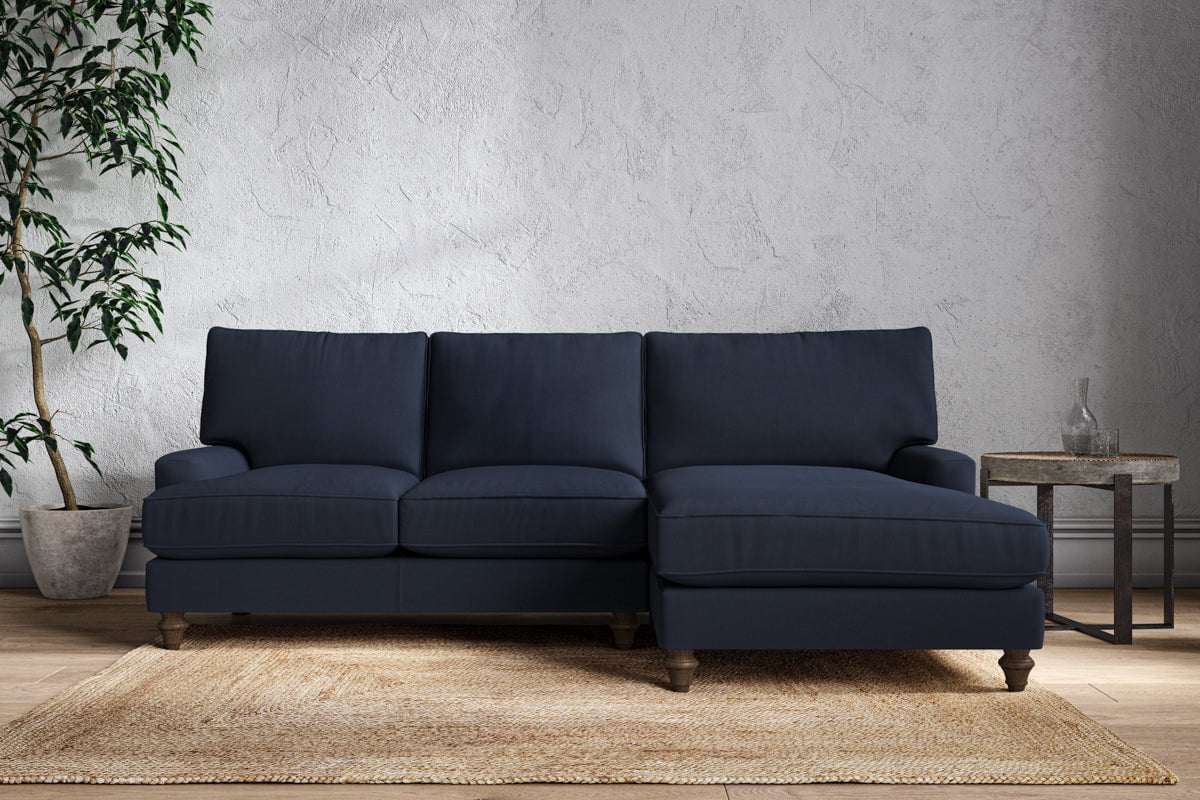 Canapé méridienne Marri Large avec accoudoir droit - Lin indigo Brera