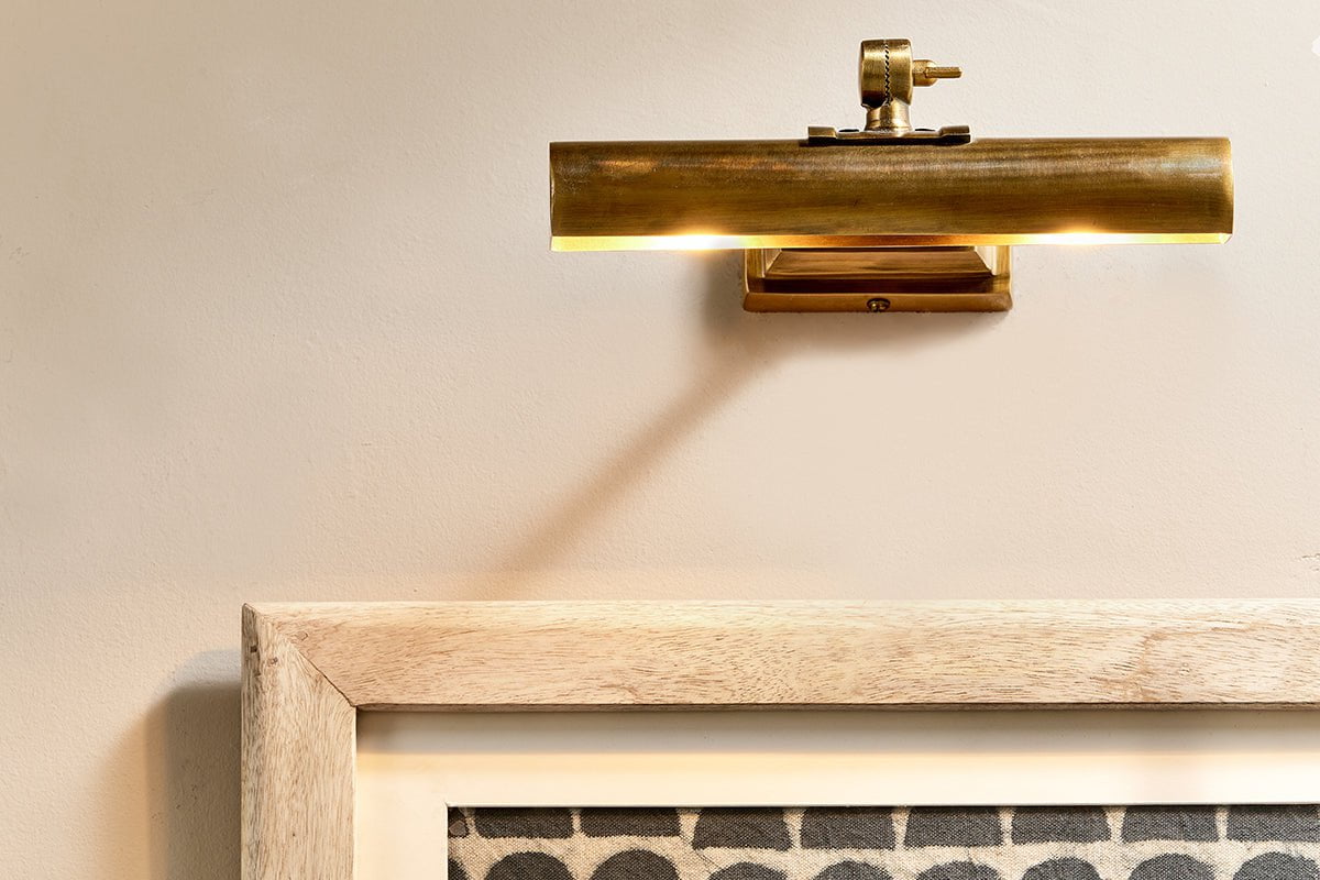 L'applique murale Pania allie le design traditionnel d'une applique murale à la chaleur du laiton vieilli. Les appliques murales sont une solution simple pour mettre en valeur vos œuvres d'art préférées. Elles sont conçues pour diffuser la lumière uniformément sur l'ensemble de l'œuvre. Elles offrent également une lumière douce, contribuant à créer une ambiance plus feutrée et chaleureuse. Le principe de base d'une applique murale traditionnelle est le suivant : sa largeur doit représenter entre la moitié et le tiers de la largeur de l'œuvre, cadre non compris. Ceci est particulièrement vrai pour les tableaux au format paysage. Pour les œuvres au format portrait, la largeur de l'applique doit être approximativement la moitié de celle du tableau, cadre non compris.