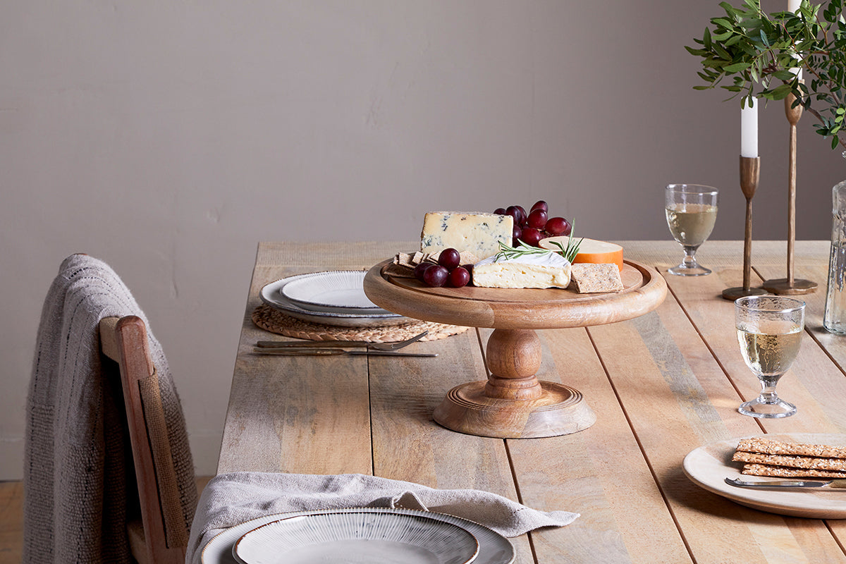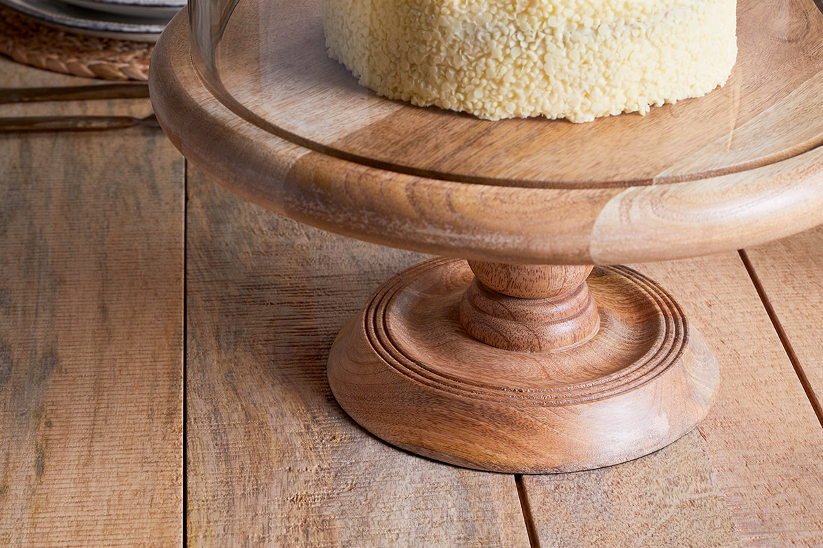 Ces élégantes cloches à gâteaux en verre recyclé offrent une façon raffinée de présenter et de conserver vos gourmandises, des gâteaux aux fromages. La cloche s'emboîte parfaitement dans le socle en bois de manguier.