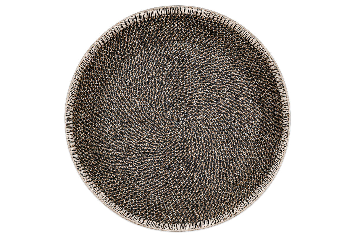 Ces paniers Sadie noirs et naturels constituent une véritable œuvre d'art murale. Au-delà de leur beauté, leur histoire est fascinante. Chaque panier est confectionné artisanalement avec un soin méticuleux. La fibre brute est roulée en un fil, puis enroulée pour lui donner sa forme et enfin soigneusement cousue. Nous collaborons depuis de nombreuses années avec cette ONG qui soutient les femmes rurales du sud de l'Inde, et leur talent est sans égal. Les paniers sont de magnifiques éléments de décoration murale : ils apportent texture, couleur et intérêt à un mur et suscitent la joie à chaque regard. Surtout lorsqu'on pense aux femmes qui les ont fabriqués. Ils peuvent également servir de grands bols placés au centre d'une table basse, une excellente façon d'ajouter de la texture à votre salon. L'ONG a été créée pour soutenir les femmes rurales des régions sujettes à la sécheresse et pour leur fournir un revenu complémentaire en période de disette. Toutes les teintures sont naturelles.