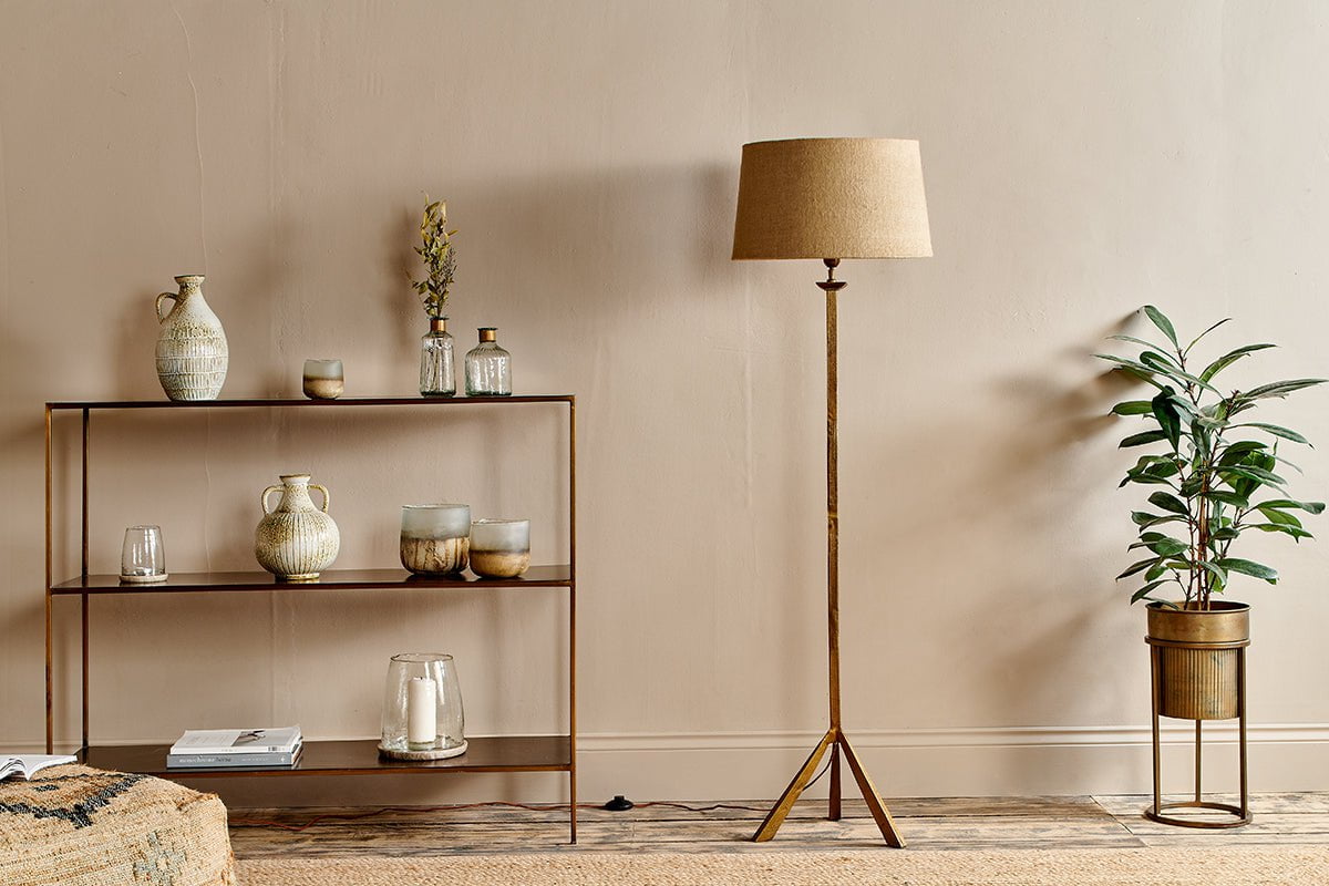 Lampadaire trépied en métal Sahhil - Laiton antique