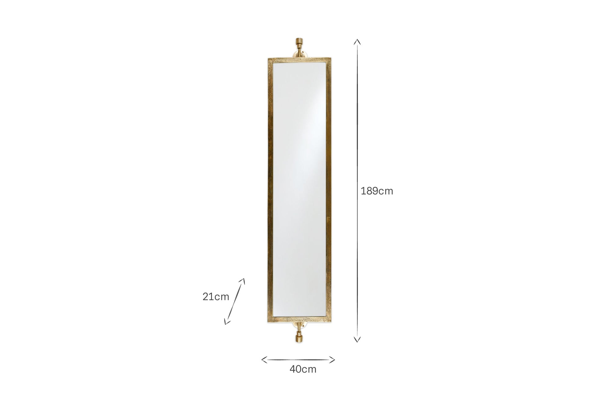 Notre miroir mural pivotant sur pied Visala est une pièce maîtresse qui apportera une touche d'élégance à une chambre ou un couloir. Son système de pivotement ingénieux permet d'orienter le miroir selon différents angles. Les fixations murales, à la fois luxueuses et d'inspiration industrielle, soutiennent solidement le cadre en aluminium moulé. La texture de l'aluminium et les reflets dorés de la finition laiton rehaussent la qualité du miroir Visala. Ce miroir est fabriqué selon un procédé traditionnel de fonderie au sable, entièrement réalisé à la main. Le sable est utilisé pour façonner et mouler l'aluminium liquide. La fonderie au sable est un procédé de production circulaire où la quasi-totalité des matériaux sont recyclables.