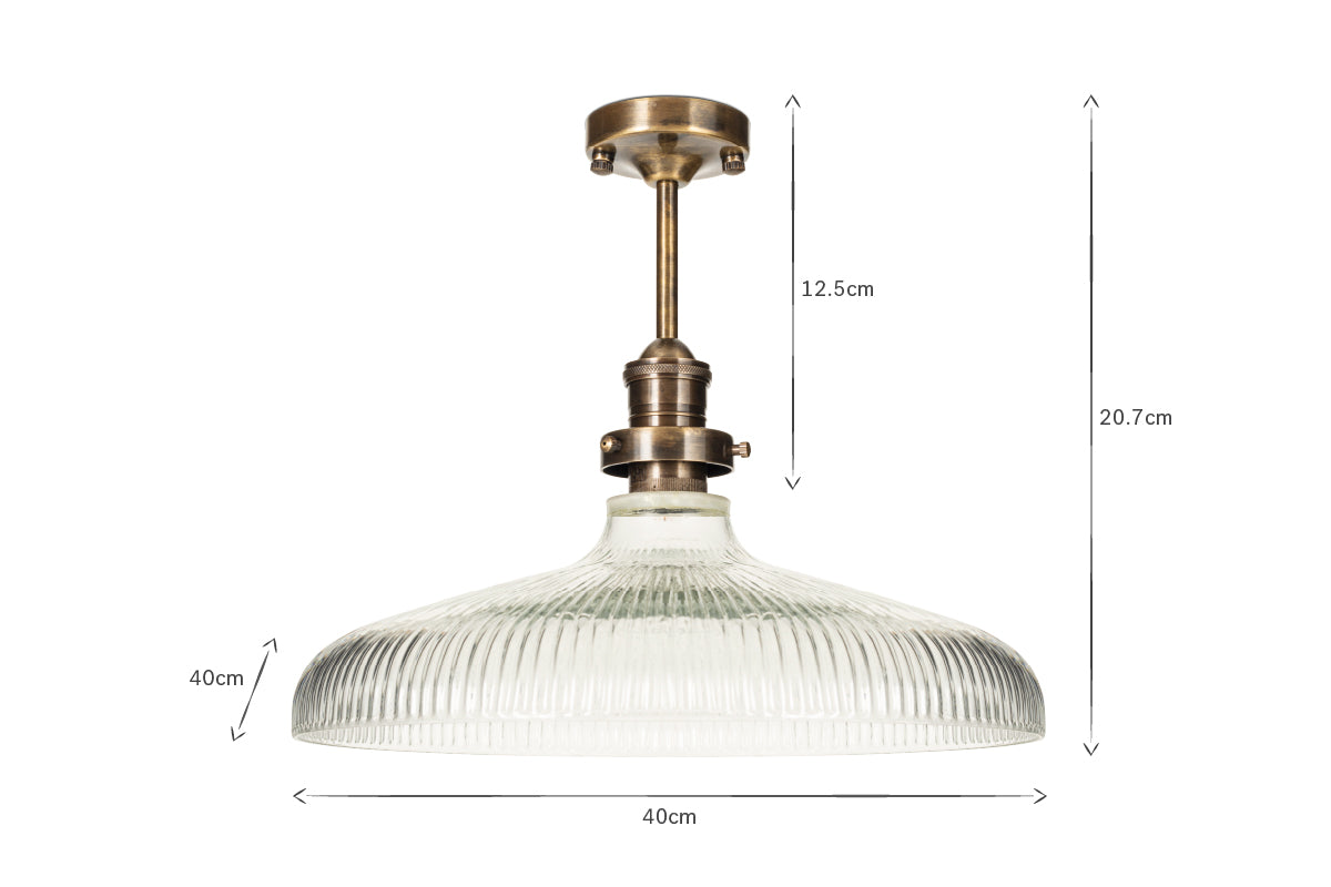 Notre plafonnier Zowie possède un charme intemporel. Son design épuré et son verre côtelé transparent optimisent la diffusion de la lumière et créent une ambiance chaleureuse. Le verre texturé apporte une touche décorative raffinée et un toucher agréable. Les fixations en laiton antique aux tons chauds complètent son allure. Fabriqué à partir de verre recyclé, ce luminaire est aussi durable qu'élégant. Installez-le au-dessus d'une table à manger ou d'un îlot de cuisine pour une esthétique sophistiquée.